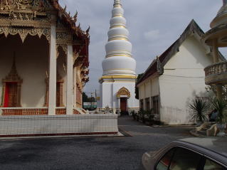 店の人がいうにはこの辺の山は「ミネラル・ウォター」を採るためにいくつかきりくずされているという。サトゥンの沖のXX島に仏足石があると聞いているから港にいって聞けばわかるだろうという。そうかもしれないが時間がないので今回はあきらめた。途中のホテルで聞いても知らないという。仕方がないのでバス停にいって次の目的地トランに行こうと思って、大通りのモーターサイの溜り場に行き、念のためこの付近に仏足石はないかといったら、街中にあるという。その寺まで連れて行ってもらった。