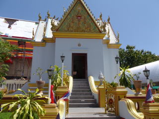 次にブンヤリットさんが案内してくれたのはカンチャナブリ市南にある Wat Chai Chumpon Songkranである。これはやたらに繁盛している寺で人の出入りも多く、何となく商売気がありそうな雰囲気を醸し出している。きれいなお堂に20世紀初め(1912年)に作られたという4段仏足跡が置かれていた。あとから写真を見ると写りが良く、別物のような感じである。ひとことでいえば、近代的に経営されている寺院である。